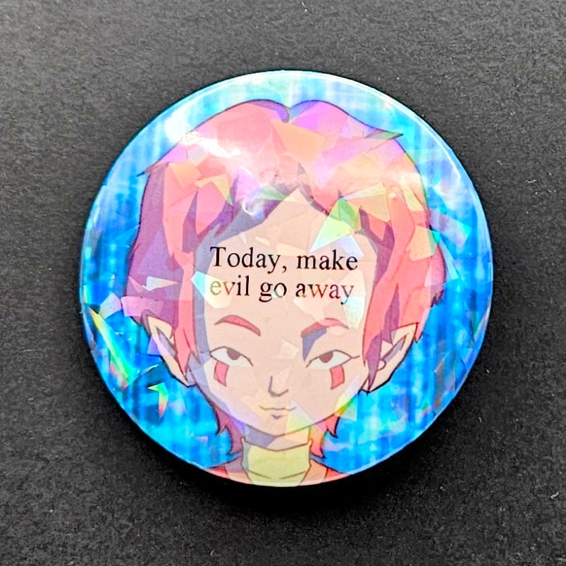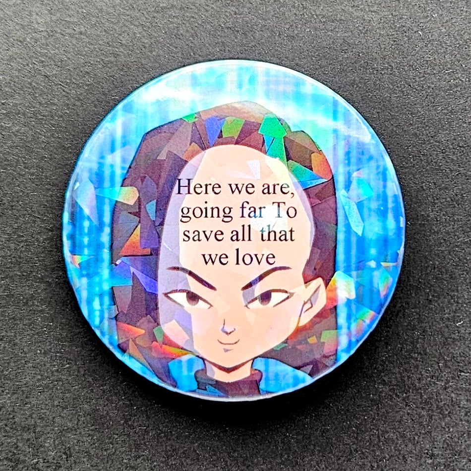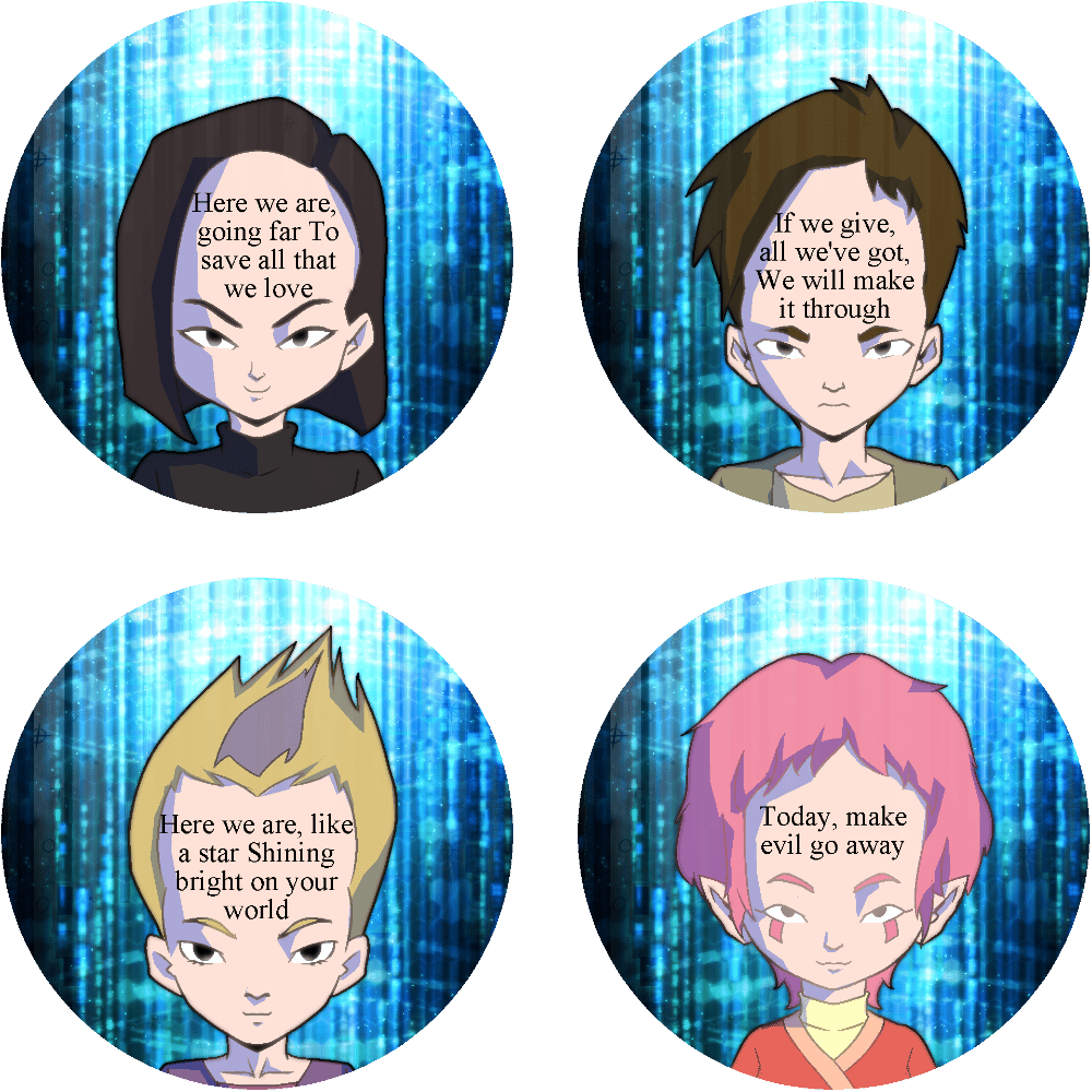 A set of 4 large pins featuring kids with a lot on their mind.